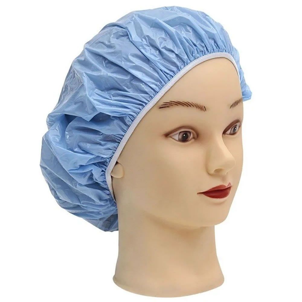 A touca é feita de polietileno e possui um elástico, garantindo resistência à água e boa fixação. -