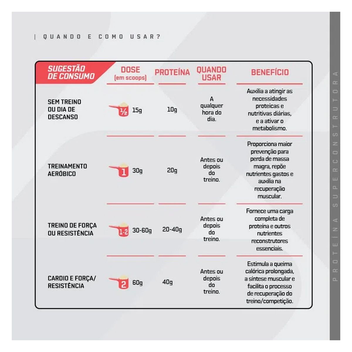 Adicione 30g (1 dosador) em 250ml de água e misture até homogeneizar. Consuma imediatamente. Fácil e rápido preparo ideal para routines de treino. -