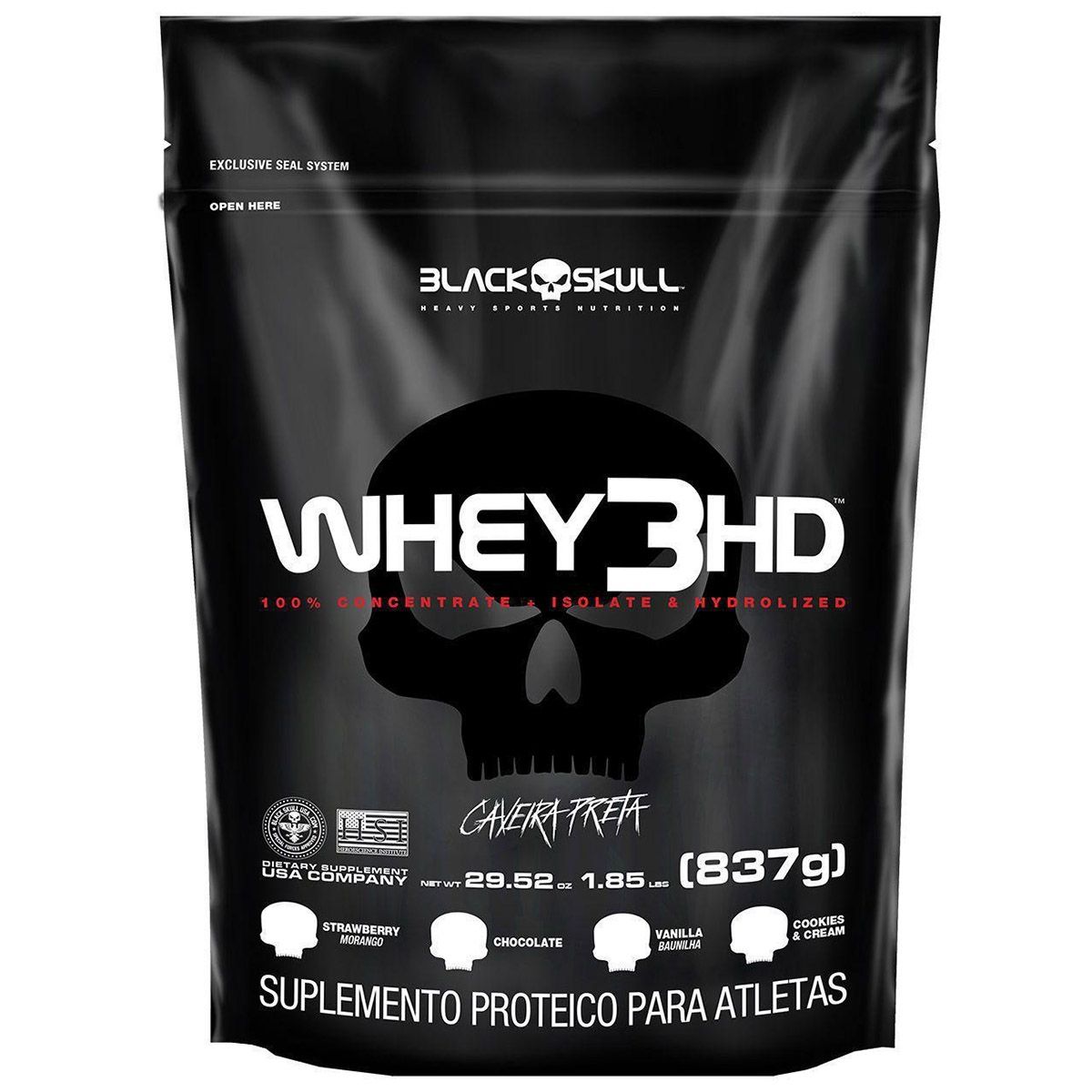 Whey Refil 3HD Sabor Morango 837g Black Skull