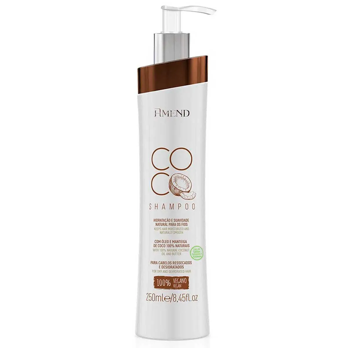 Indicada para cabelos ressecados e desidratados, a Amend Coco é um shampoo com alto teor de minerais e vitaminas que impulsionam o crescimento dos fios, ajudando a repor nutrientes, restaurar e lubrificar os cabelos.
