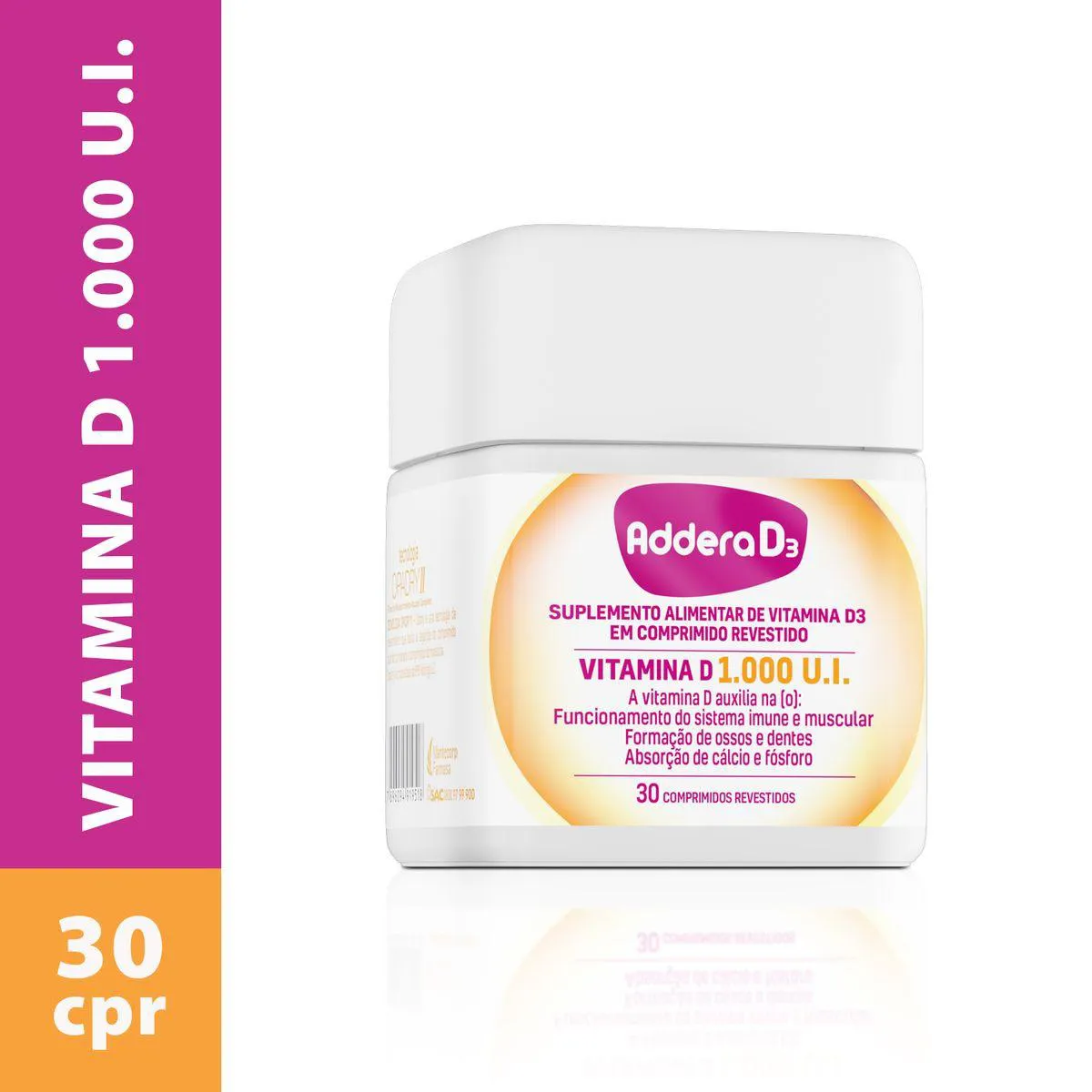 Addera D3 é um suplemento de vitamina D que auxilia na formação de ossos e dentes, na absorção de cálcio e fósforo pelo intestino, no funcionamento adequado do sistema imunológico e no desempenho da função muscular normal.