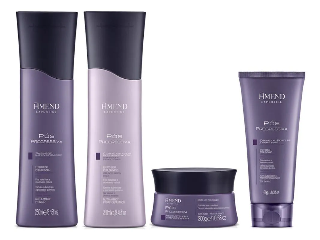 O Amend Expertise Pós Progressiva Shampoo Intensificador conserva o PH natural dos cabelos, limpa os fios sem agredi-los. Controla a oleosidade do couro cabeludo. O efeito liso é prolongado. Com Nutri-Amino, repara danos e repõe os aminoácidos perdidos. Promove brilho, maciez e movimento natural dos fios.