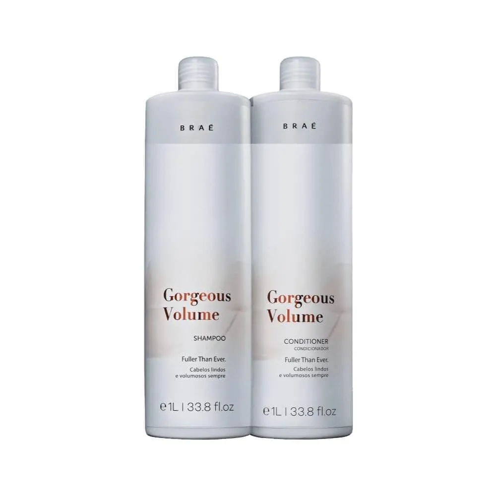 Contém: BRAÉ Gorgeous Volume - Shampoo 1000ml: limpa suavemente os fios enquanto proporciona mais corpo e resistência para a fibra capilar. BRAÉ Gorgeous Volume - Condicionador 1000ml: condiciona e promove maior volume para os fios.