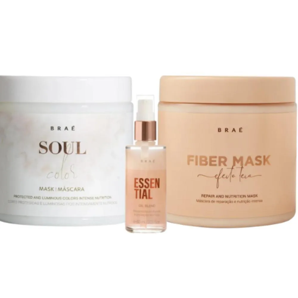 Braé Kit Mascara Soul Color Fiber Oil Blend Trio Salon (3 Produtos)