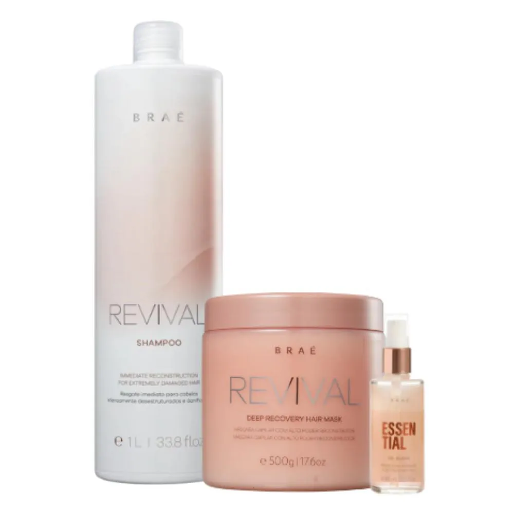 Braé Kit Oil Blend Revival Tratamento Trio Salon (3 Produtos) Braé Brae Revival shampoo 1 litro: Este shampoo é formulado para revitalizar e fortalecer o