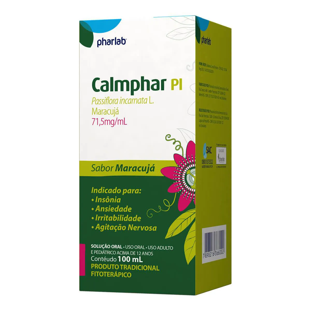 Calmphar PI solução oral: Ingerir 5mL (½ copo dosador) a 10mL (1 copo dosador), 3 vezes ao dia,de 8 em 8 horas. Agitar o frasco antes de utilizar. Os produtos tradicionais fitoterápicos não devem ser administrados pelas vias injetável e oftálmica.
