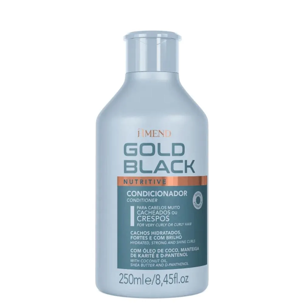 shampoo nutritivo Gold Black da mesma linha. Com o condicionador nutritivo Gold Black de 250ml, você obterá cabelos nutridos, macios e brilhantes, proporcionando um aspecto saudável e cuidado aos seus fios.