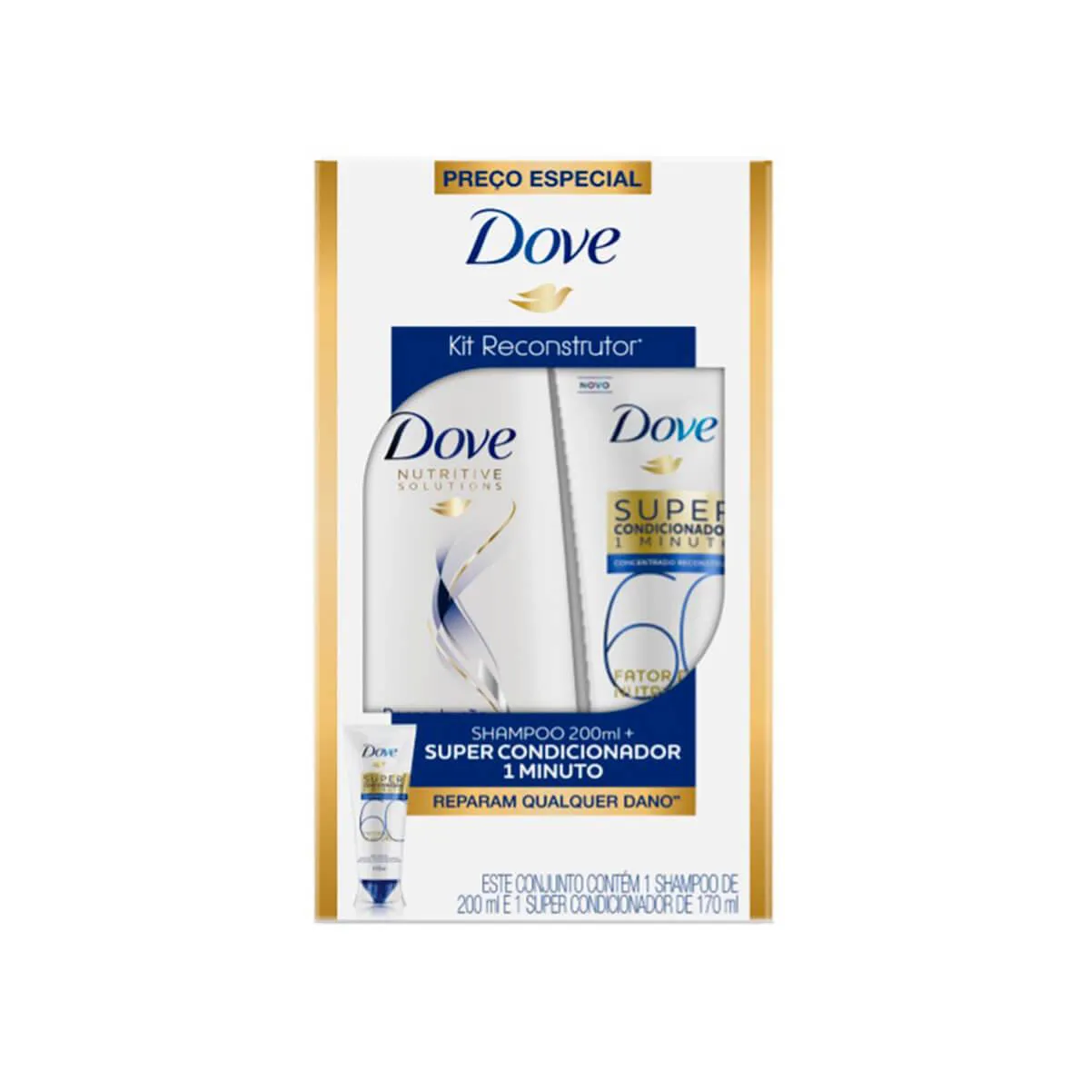- Kit Dove Reconstrutor Shampoo200ml + Super Condicionador 1 minutos 100ml