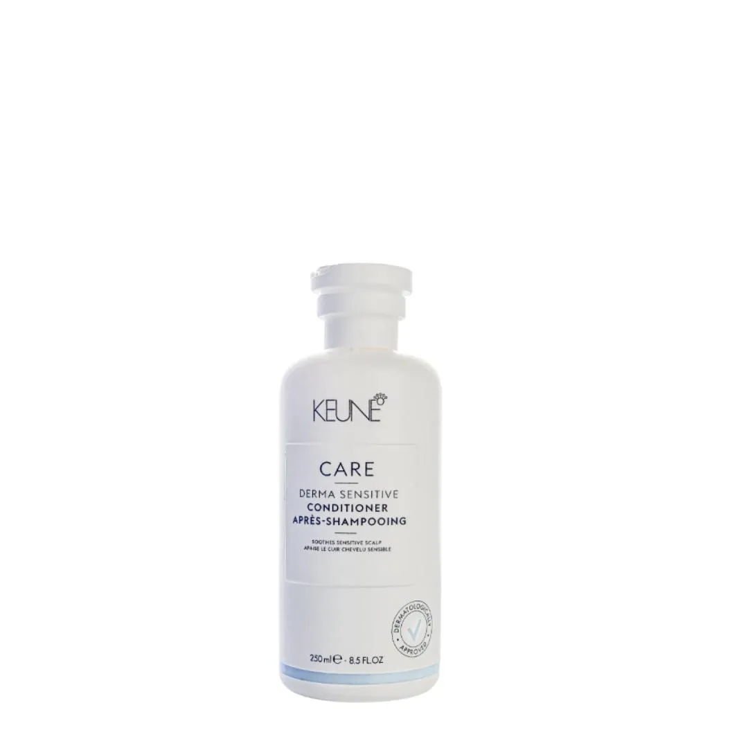condicionador para todos os tipos de cabelos, principalmente para quem tem couro cabeludo sensível. Keune Care Derma Sensitive condiciona e hidrata com efeito calmante e suavizante. O Condicionador Keune Care Derma Sensitive é ideal para um cuidado intensivo no couro cabeludo e garante fios leves, macios e brilhantes. Faz parte da linha Keune Care Derma Sensitive desenvolvida especialmente para o couro cabeludo sensível, que age efetivamente combatendo a vermelhidão e a irritação. Com seu efeito calmante, a linha alivia a coceira ao mesmo tempo em que deixa os cabelos macios e com brilho. Livre de Parabenos e Cruelty Free. Como Usar