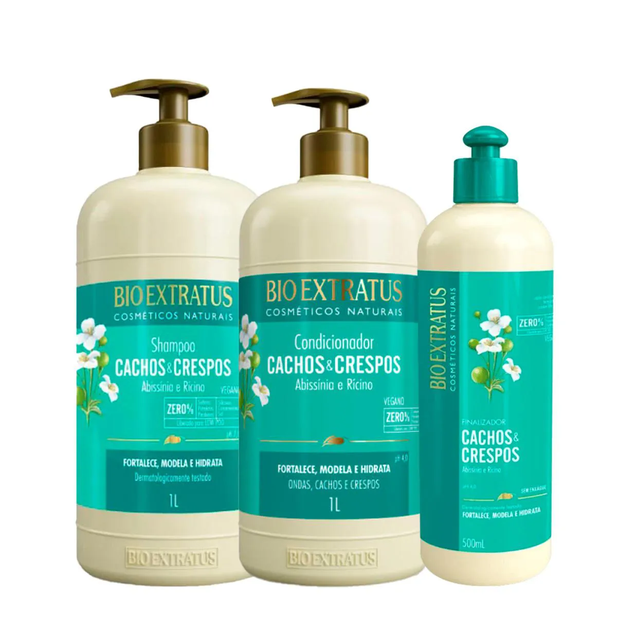 Kit Bio Extratus Cachos & Crespos Abissínia e Rícino shampoo condicionador e Finalizador G (3 produtos)