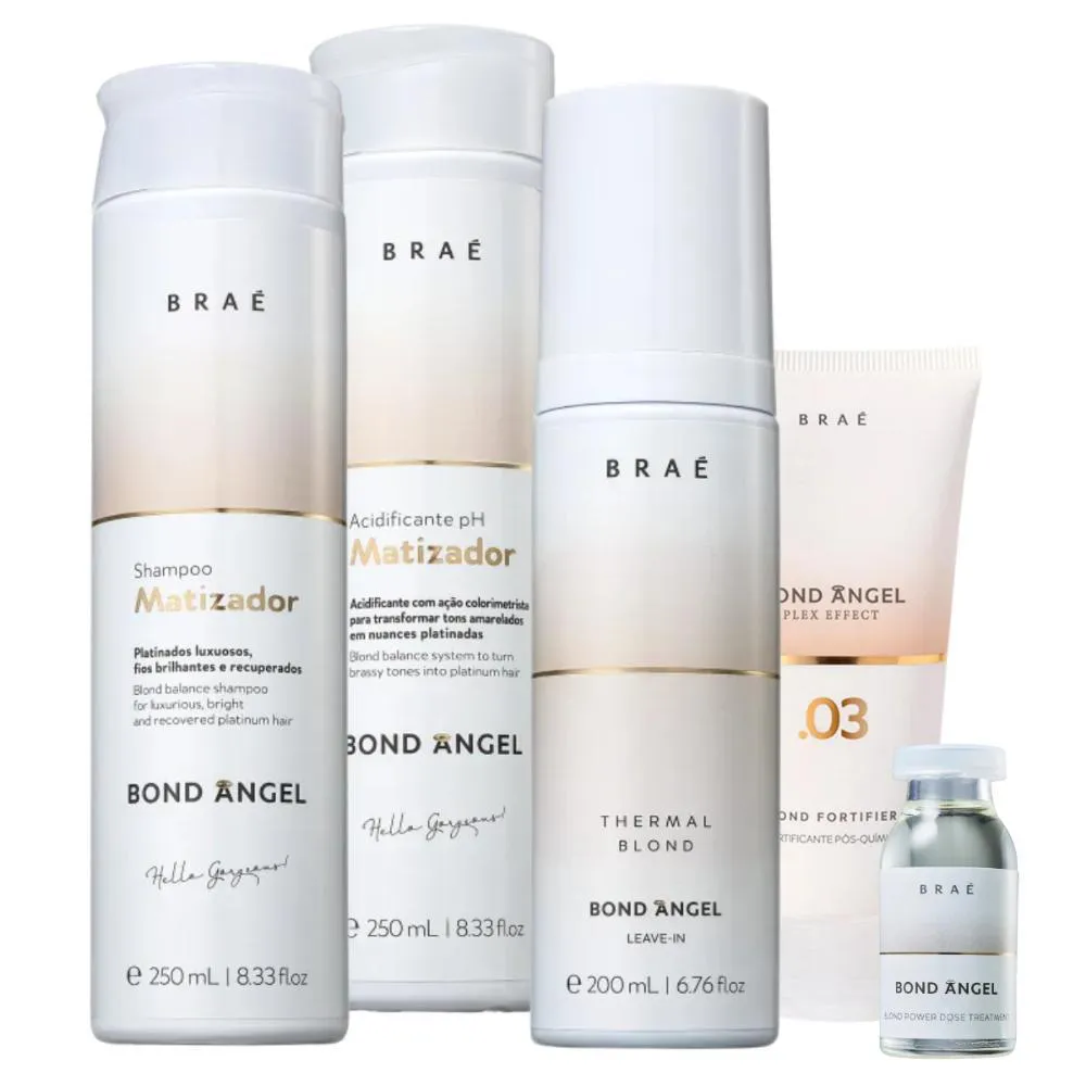 Com o Kit Braé Bond Angel Completo, você terá todos os produtos necessários para cuidar dos seus cabelos loiros em um único kit. Não perca a oportunidade de ter cabelos deslumbrantes e saudáveis.