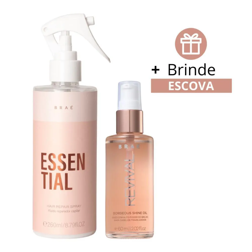Kit Braé Essential Fluido Reparador 260ml, Revival Gorgeous Shine Oil 60ml + Mimo escova