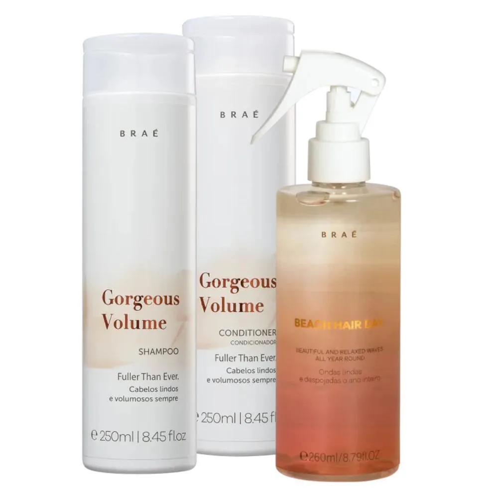 BRAÉ KIT GORGEOUS SH 250ML + COND 250ML + BEACH HAIR 260ML O Kit BRAÉ Gorgeous é um conjunto de produtos capilares que proporcionam volume e textura aos cabelos, com um toque de praia. Este kit inclui: Gorgeous