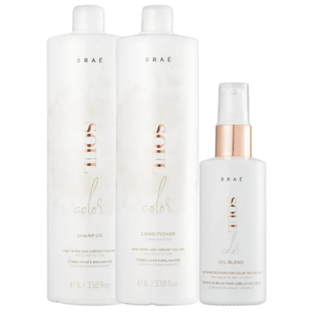 hidratação e brilho aos cabelos. O kit inclui três itens: BRAÉ Soul Oil Blend (60ml), BRAÉ Soul Shampoo (1L) e BRAÉ Soul Condicionador (1L). O BRAÉ Soul Oil Blend é um óleo capilar que contém uma mistura de óleos nutritivos e reparadores. Ele ajuda a revitalizar os fios, proporcionando hidratação intensa, nutrição profunda e brilho radiante. O óleo capilar também ajuda a controlar o
