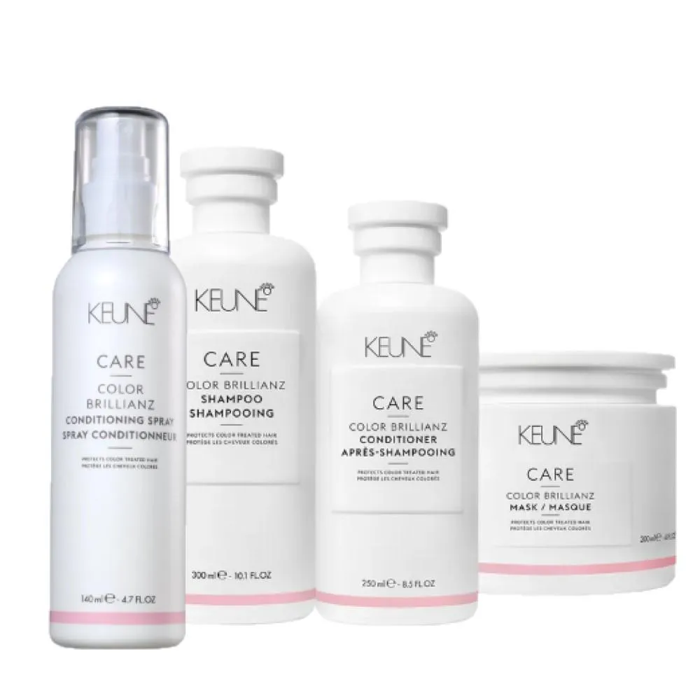 Keune Color Brillianz – shampoo 300ml : Indicado para cabelos coloridos, ele tem tecnologia que fixa os pigmentos nos cabelos coloridos, estabilizando a cor e evitando desbotamento. O produto proporciona limpeza suave sem agredir os fios coloridos e garante brilho e luminosidade por mais tempo.