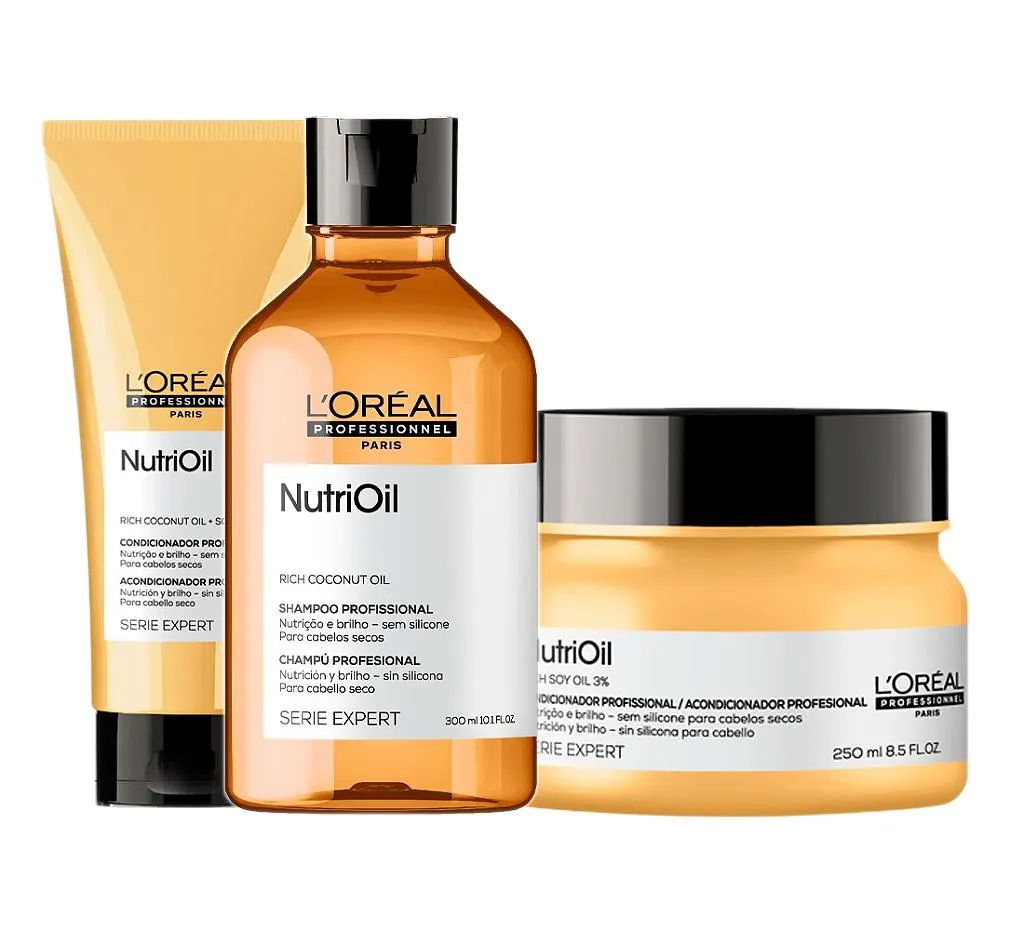 Kit L'Oréal NutriOil - shampoo, condicionador e MáscaraL'Oréal Professionnel Nutrioil - Shampoo 300ml
