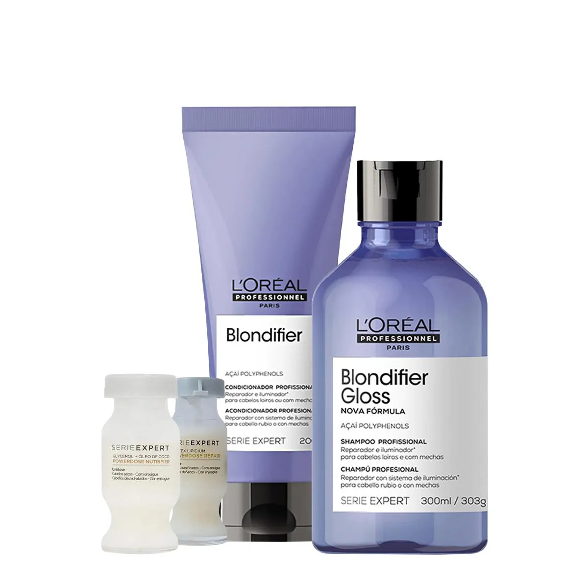 Kit L'Oréal Professionnel Serie Expert Blondifier gloss shampoo condicionador e Ampolas (4 produtos)