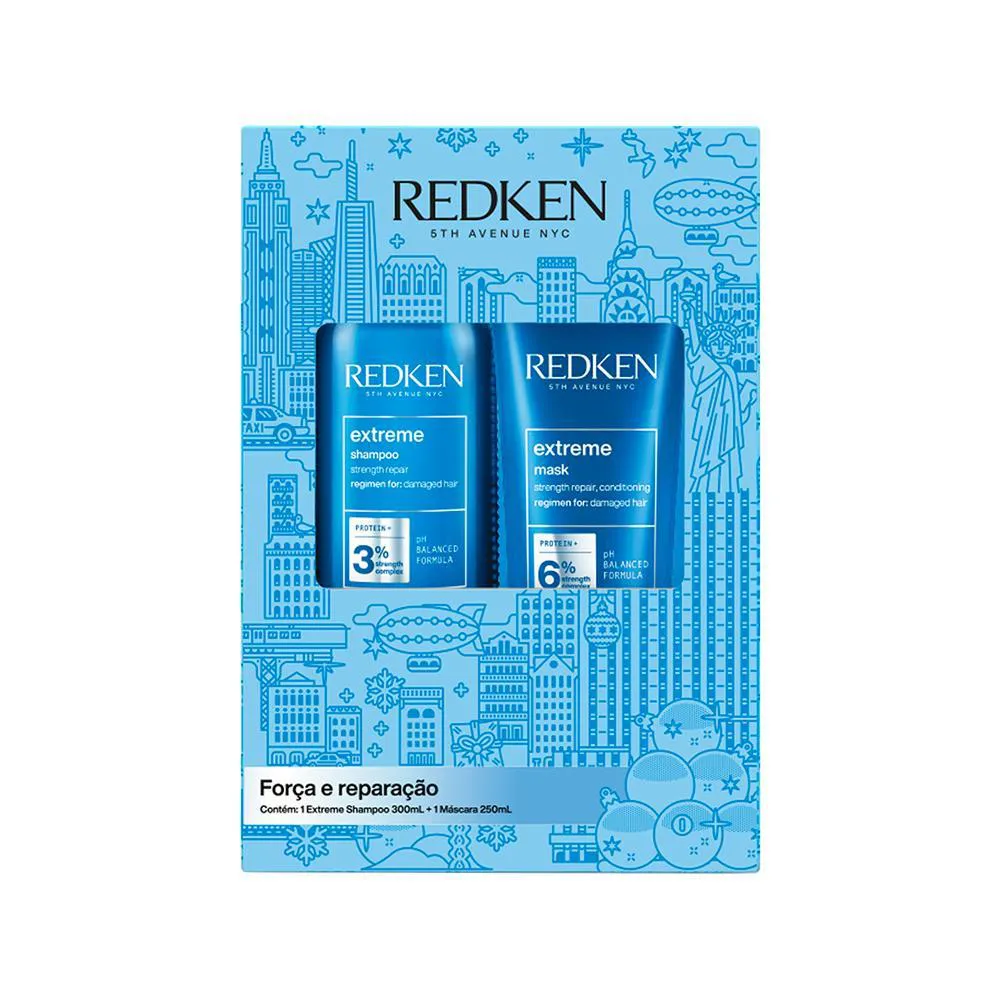* ITENS INCLUSOS: 1 Redken Extreme Shampoo 300ml; 1 Redken Extreme Máscara de Força 250ml.