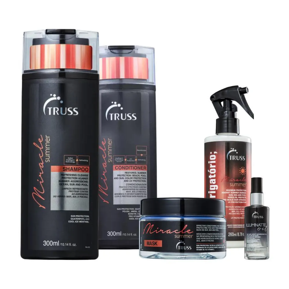 O Kit Truss Miracle Summer é um conjunto de produtos especialmente desenvolvidos para proteger e tratar os cabelos durante o verão e exposição ao sol. O kit é composto por