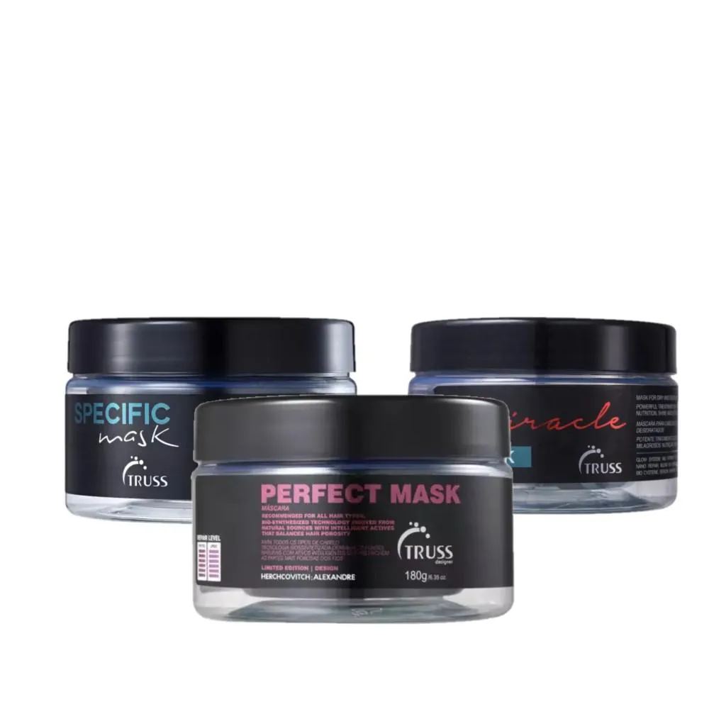 Este kit Contém: Máscara Specific (Hidratação Intensiva): Proporciona hidratação profunda para fios mais suaves e nutridos. Máscara Perfect (Reparação Profunda): Restaura a vitalidade e resistência, reparando os cabelos danificados. Máscara Miracle (Resultados Milagrosos): Oferece uma experiência capilar única, deixando os fios deslumbrantes, saudáveis e radiantes.