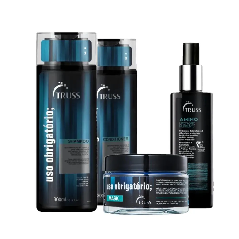Proporcione aos seus cabelos um cuidado completo e avançado com o Kit Truss Uso Obrigatório e Cuidados Intensivos. Adquira agora para garantir cabelos saudáveis, protegidos e deslumbrantes!