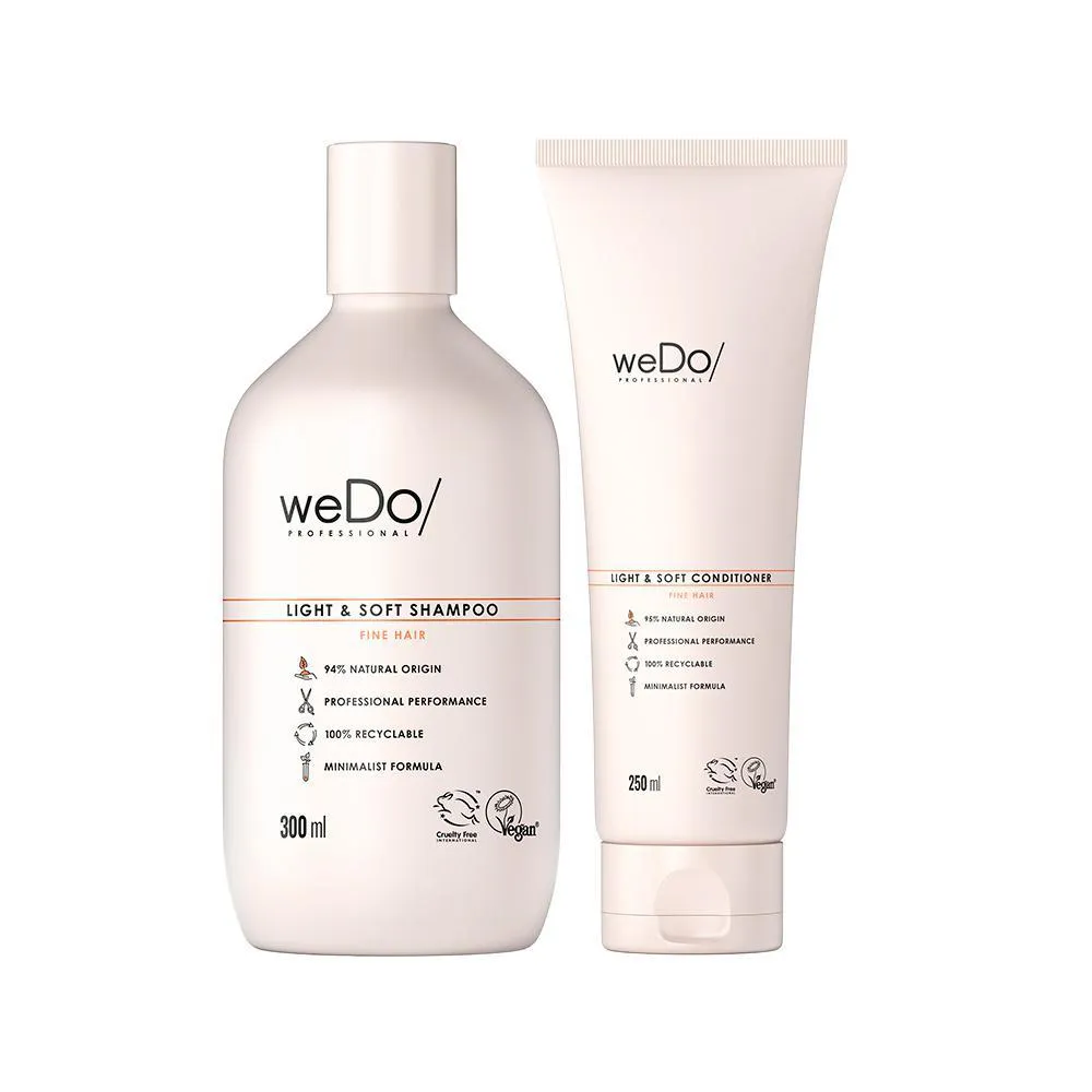 * ITENS INCLUSOS: 1 WeDo Professional Light&Soft Shampoo 300 ml; 1 WeDo Professional Light&Soft Condicionador 250 ml.