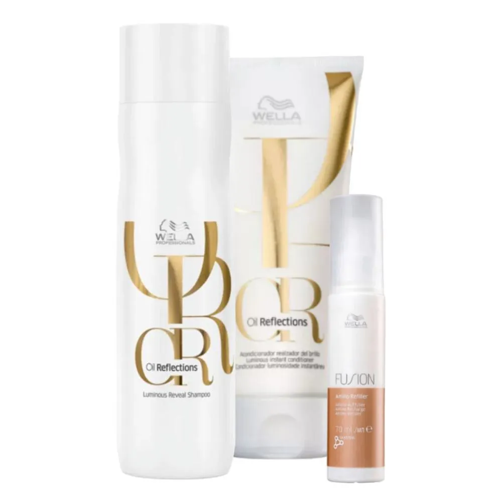 O Kit Wella Oil Reflections é uma linha de cuidados capilares que proporciona nutrição e brilho intenso aos cabelos. Este kit inclui o