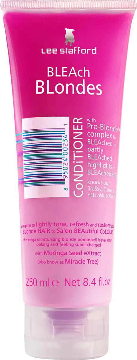 O Condicionador Bleach Blonde Lee Stafford potencializa o efeito desamarelador do shampoo Bleach Blonde. Auxilia na manutenção da cor, luminosidade e hidratação dos cabelos loiros naturais ou tingidos.