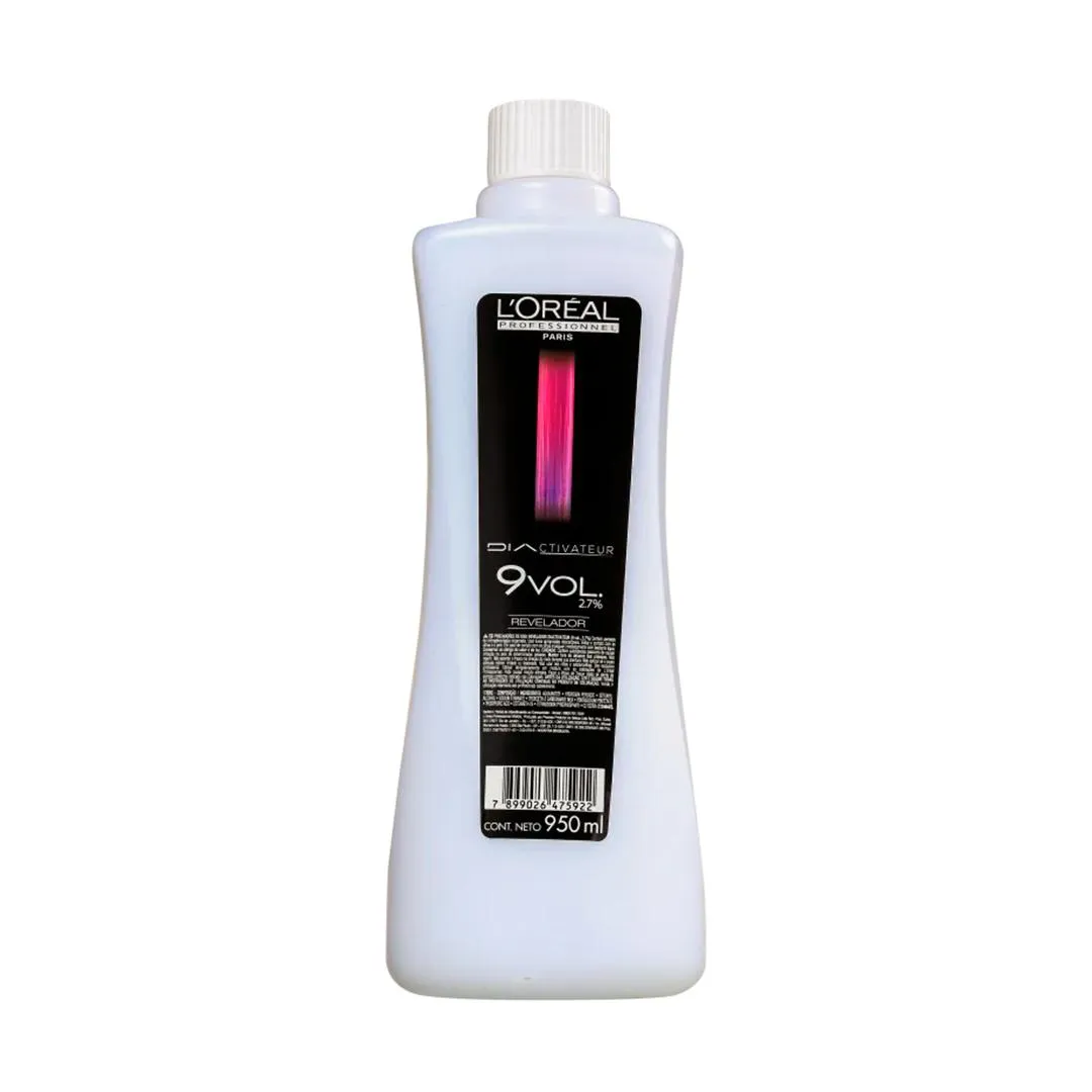Conteúdo da Embalagem: L’Oréal Professionnel Diactivateur - Emulsão Reveladora 9 Volumes 950ml Principais Ingredientes: Peróxido de Hidrogênio 2,7%: responsável por revelar a cor de maneira uniforme, com resultado fiel à cartela de cores e duradoura. Modo de Uso: