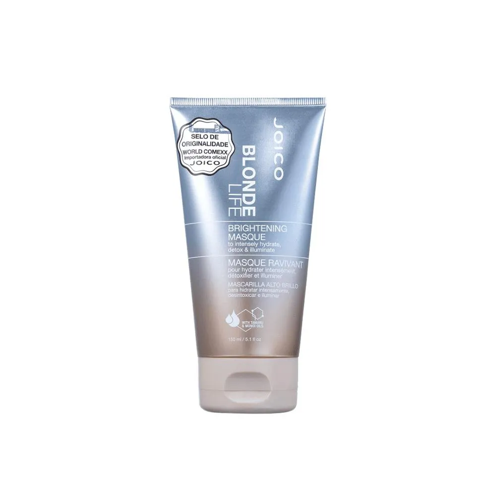 Joico Blonde Life Brightening Masque ajuda a manter a cor ideal e a saúde dos fios ao mesmo tempo. Sua fórmula proporciona ação desintoxicante que impede que os fios fiquem amarelados ou opacos, além de proteger contra raios UV, altas temperaturas e oxidação. Nutre através da reposição de lipídios sem pesar ou comprometer o movimento.