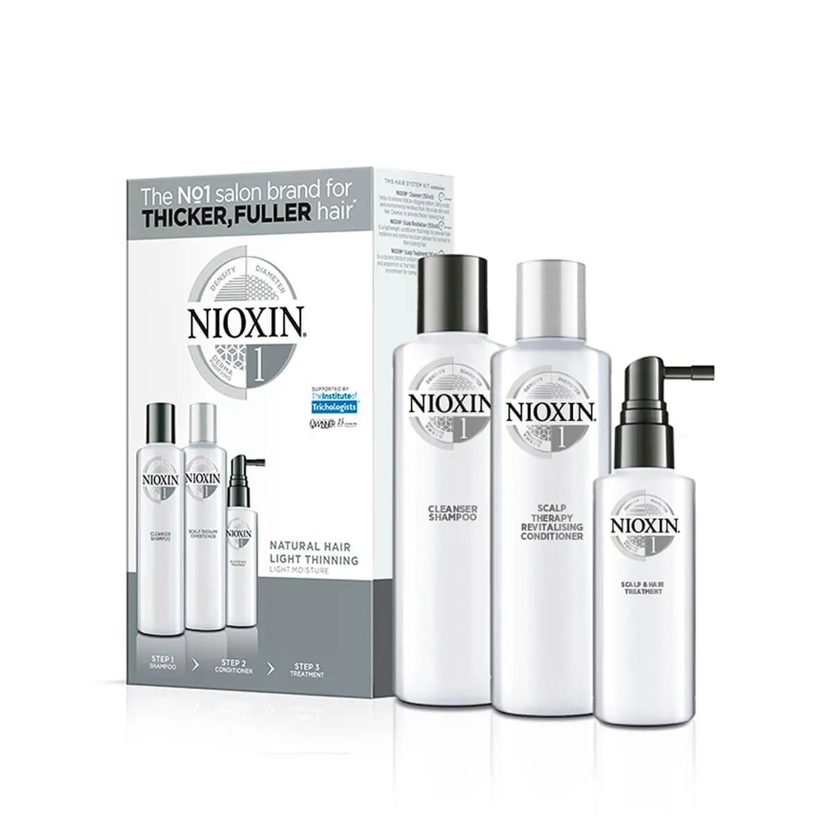 - Kit Nioxin Sistema 1 Três Partes Shampoo 150ml + Condicionador 150ml + Leave-In 50ml