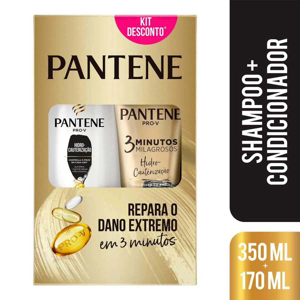 - Kit Pantene Pro-V Anti-Frizz Hidro-Cauterização Shampoo 350ml + Condicionador 3 Minutos Milagrosos 170ml