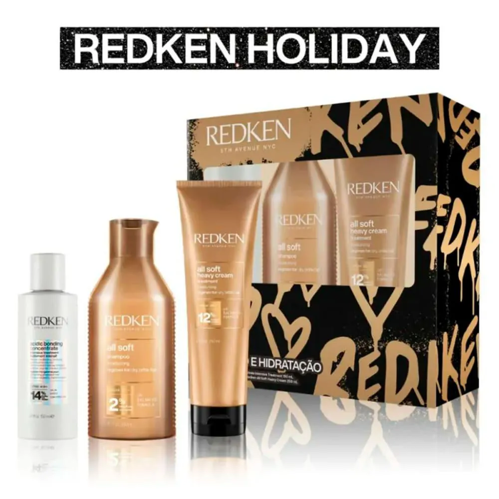 O Redken Kit All Soft Shampoo + Máscara + Pré Shampoo ABC é indicado para cabelos secos e opacos.