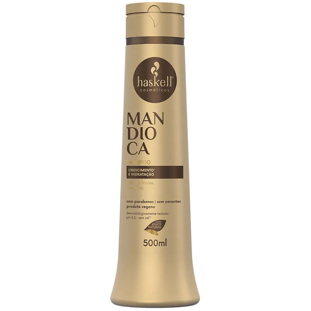 shampoo, massageando o couro cabeludo em suaves movimentos circulares. Enxágue bem. Se necessário, repita a aplicação. Potencialize os resultados utilizando toda a linha Mandioca. ============================================================== Este anúncio contém: -01 Shampoo Haskell Mandioca 500ml. SKU interno HK00191 Ísis Cosméticos- A sua parceira no mundo da Beleza!???? Agradecemos a preferência.