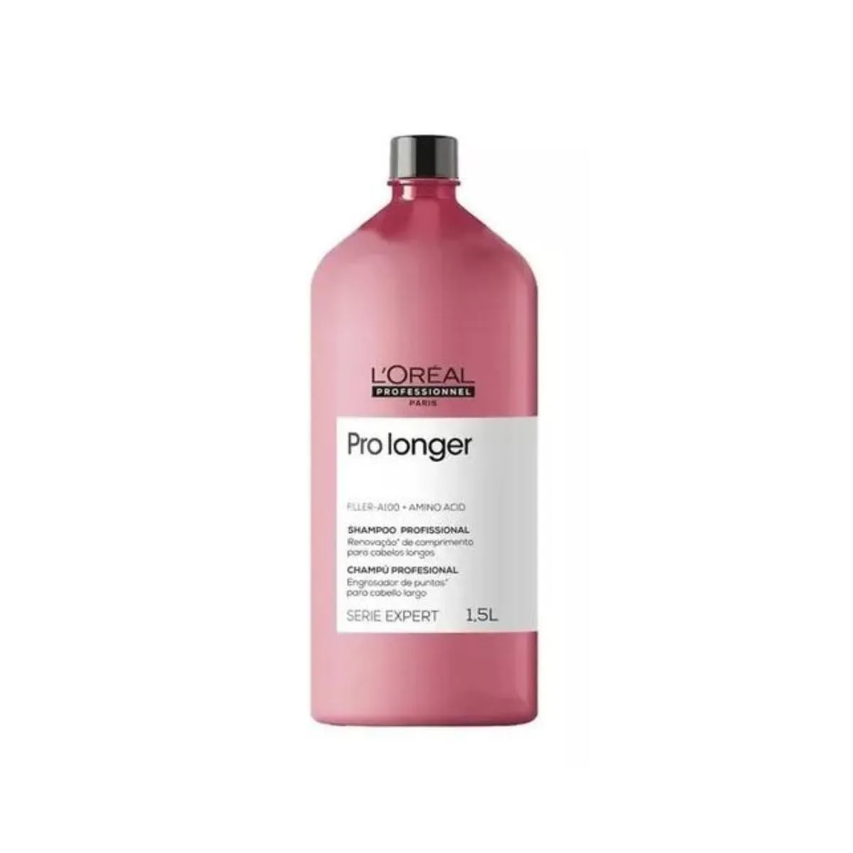 shampoo tratamento preenchedor de pontas para cabelos longos com pontas afinadas ou danificadas. Sua fórmula devolve a densidade à ponta dos fios. Ao utilizar, há uma redução drástica na quebra do cabelo e as pontas duplas são reduzidas significativamente. A tecnologia Filler-A100 faz com que o produto penetre no núcleo da fibra capilar para preencher e densificar a estrutura do cabelo por dentro enquanto os aminoácidos trabalham para fortalecer o cabelo pelo lado de fora. O Shampoo funciona em extremidades finas ou em áreas onde o preenchimento é mais necessário. Contém, também, a tecnologia da Co-Emulsão, que conta com moléculas 50 vezes menores do que as tradicionais, penetrando profundamente na fibra, formando um filme fino, homogêneo e aperfeiçoando a superfície do cabelo. Quando usado em conjunto Shampoo + condicionador*, o Pro Longer para cabelos longos, permite 64% mais volume, -20% pontas duplas e 5 vezes mais brilho. Ao usar Shampoo + Ampola* 50% mais volume, 17% menos pontas duplas e fibra capilar mais espessa. (*teste instrumental após aplicação dos dois produtos).
