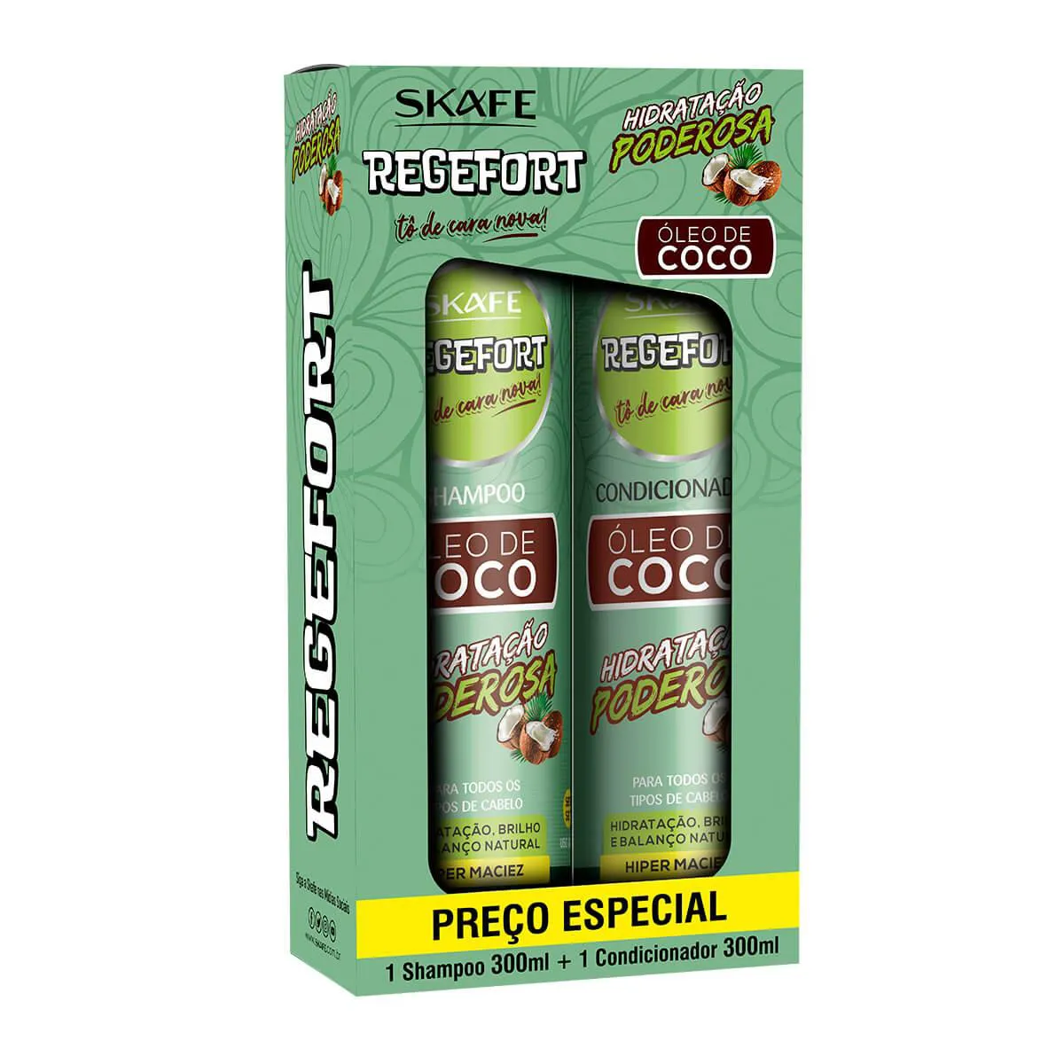 - Kit Skafe Regefort Hidratação Poderosa Óleo de Coco Shampoo 300ml + Condicionador 300ml