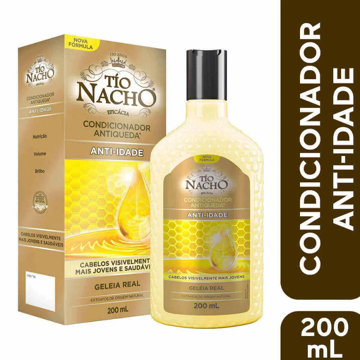 O Condicionador Tio Nacho Antiqueda e Anti-idade possui exclusiva fórmula que combate a queda e o envelhecimento dos cabelos.