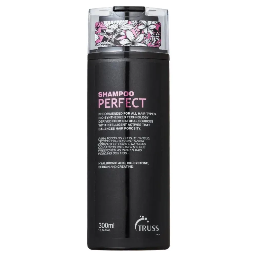 shampoo Truss Perfect 300ml INFORMAÇÕES Indicado para todos os tipos de cabelo. Restaura a elasticidade e resistência. Forma uma camada protetora que restaura a cutícula promovendo um cabelo saudável e sedoso. Ação Anti-Aging. ATIVOS: Bio Affinity Complex: possui bioafinidade constitutiva com os fios, reforçando sua estrutura interna. Fornece elementos fito-nutrientes para reparação da cutícula danificada, restaurando os cabelos danificados por processos químicos ou agressões externas (raios UV, vento, uso excessivo do secador e prancha). Polycare: formador de filme. Proporciona maciez, brilho e efeito anti-