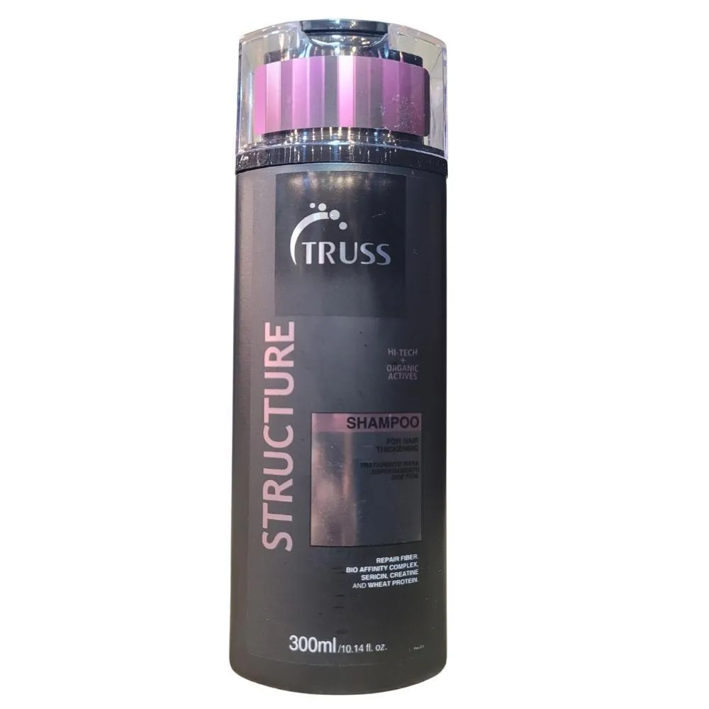 shampoo para cabelos finos e danificados. Shampoo Truss Structure higieniza enquanto recupera a elasticidade e resistência, além de proporcionar espessura e força aos cabelos finos. O shampoo é ideal para dar espessura e força ao cabelo. Forma uma película que envolve os fios, recuperando e encorpando as fibras danificadas.