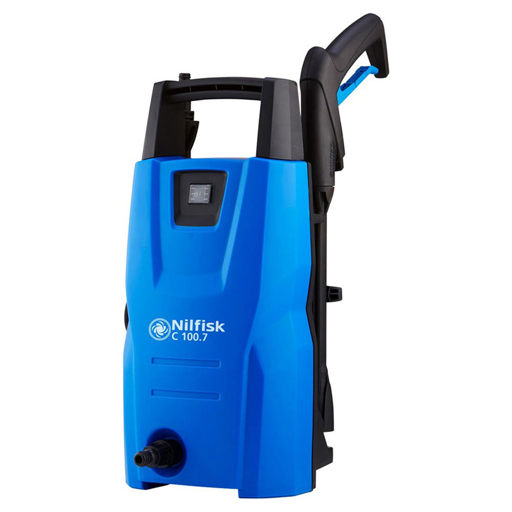 La C 100.7 de Nilfisk es una hidrolavadora de alta presión de diseño compacto, ligero y fácil de manejar, es ideal para la limpieza ocasional de cercas, paredes, coches, bicicletas, muebles de terraza y patios pequeños.