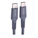 Cabo tipo C em TPE na cor cinza, produzido em material reforçado, com múltiplas proteções de segurança e contra sobrecarga de bateria , alta temperatura e alta voltagem além de velocidade de carga com 2.4A.