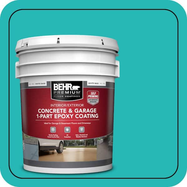 5 gal. #MQ4-21 Caicos Turquoise Self-Priming 1-Part Epoxy Satin Interior/Exterior Concrete and Garage Floor Paint