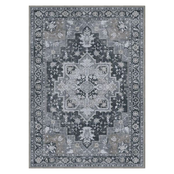 Medallion Dark Drey 5 ft. x 7 ft. Persian Area Rug