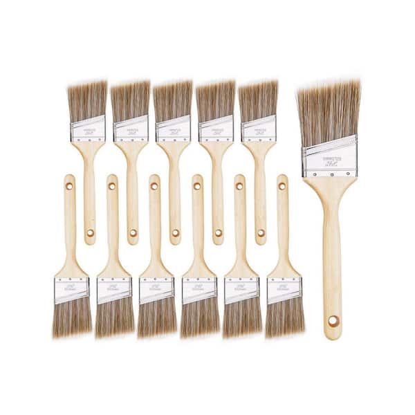 12 in. x 2.5 in. 12 Pieces Angle Paint Brush Treated Wood Handle, Paint Brush Set for All Latex and Oil Paints & Stains