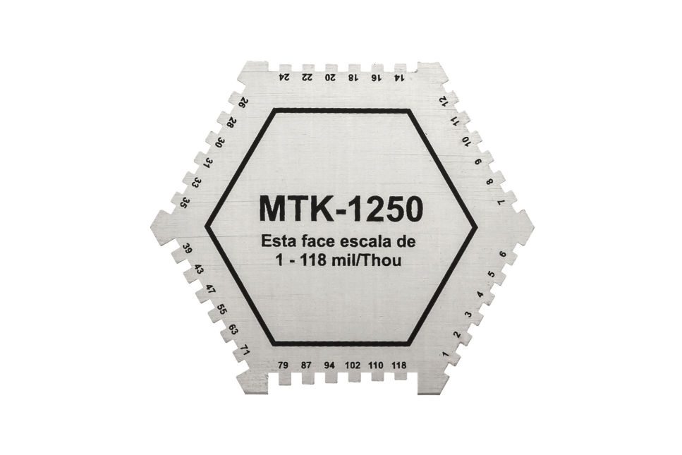 • Faixa de medição de 1 a 118mil, em 36 amostras: 1, 2, 3, 4, 5, 6, 7, 8, 9, 10, 11, 12, 14, 16, 18, 20, 22, 24, 26, 28, 30, 31, 33, 35, 39, 43, 47, 55, 63, 71, 79, 87, 94, 102, 110, 118mil ;