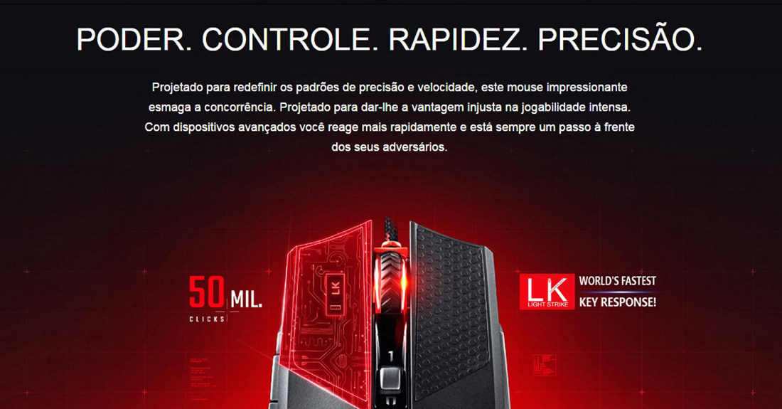 e suavemente na nossa roda de rolagem X`Glide de metal, aumentando a durabilidade e melhoria no deslizamento do mouse.