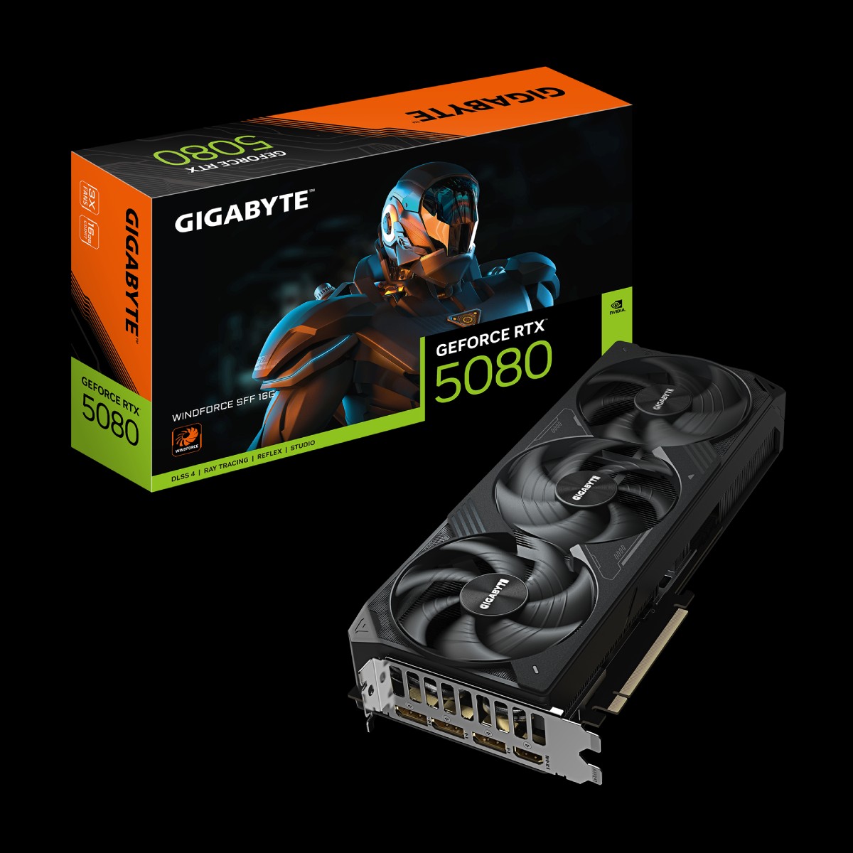 Placa de Vídeo GeForce RTX 5080 16GB GDDR7 256bits - DLSS 4 - Windforce SFF - Gigabyte GV-N5080WF3-16GD