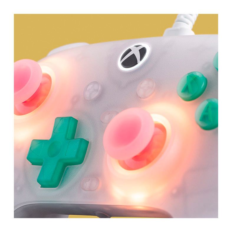 | Características: | Tamanho compacto e leve Fire Ring RGB lighting joysticks Fire Ring Mode Light-tracing Mode Rainbow Ring Mode Gatilhos e joysticks de Efeito Hall Gatilho de impulso e vibração Aderência aprimorada Conector de áudio de 3,5 mm Botões táteis e D-pad Licenciado oficialmente pelo Xbox |