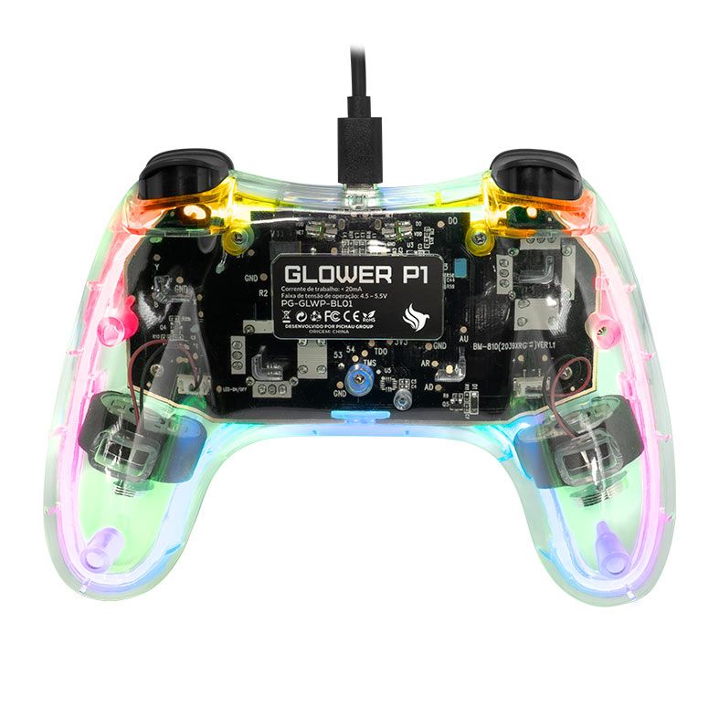 Com um visual impactante e tecnologia de ponta, o Controle Gamer Pichau Glower P1 entrega uma experiência imersiva e cheia de estilo para quem não abre mão do desempenho. Com um design translúcido futurista e detalhes em iluminação Neon RGB, esse controle transforma cada partida em um espetáculo!