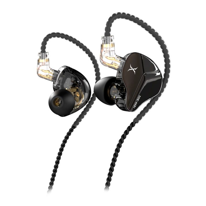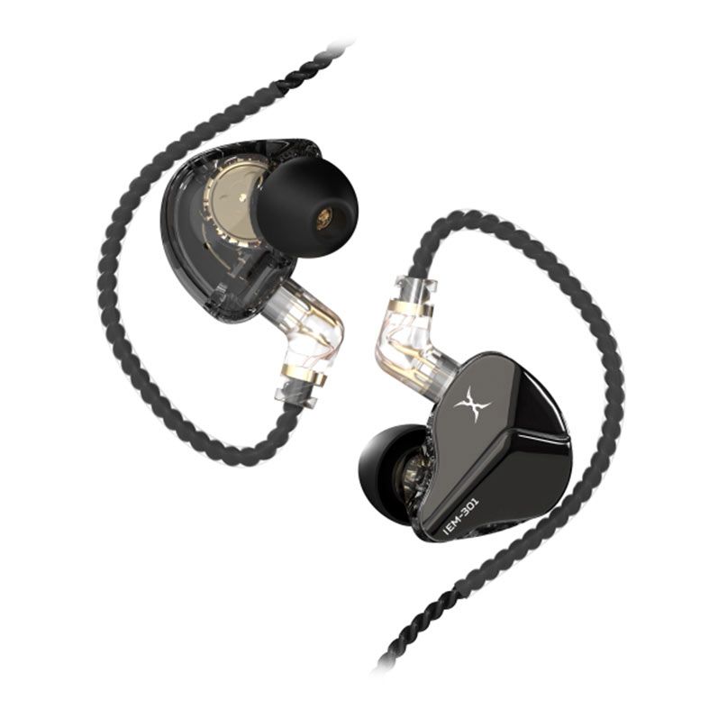 O design do IEM-301 é ergonômico, com um formato que se molda confortavelmente ao canal auditivo. Ele geralmente acompanha ponteiras de silicone de diferentes tamanhos para garantir o ajuste perfeito e o isolamento de ruído passivo.